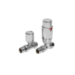 Sold as a pair, these radiator valves are made from durable brass and feature an angled design that neatly conceals the pipework within the wall. The convenient manual controls allow for easy temperature adjustment in your bathroom, ensuring you step out of the bath or shower into cozy warmth.